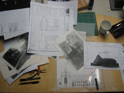 Voor we aan een maquettestuk kunnen beginnen moeten we eerst alle gegevens verzamelen, zoals kaarten, tekeningen, foto's e.d..
