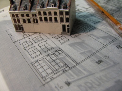 Met behulp van de gegevens worden de gevels gereconstrueerd en uitgetekend en vervolgens uitgesneden.