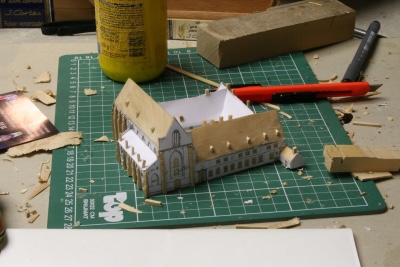 Sommige gebouwen worden van lindenhout gemaakt waar de uitgesneden gevels opgeplakt worden.