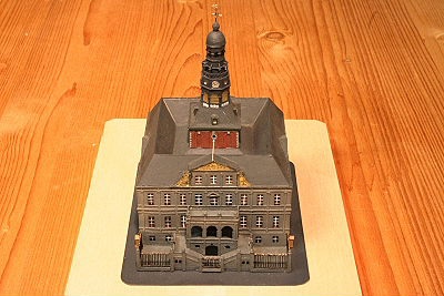 Het stadhuis doet met zijn zware architectuur een beetje on-Maaslands aan. Het was dan ook vooral bedoeld als illustratie van de (Hollandse) ´Gouden Eeuw´. De buitenkant is rijk versierd, maar doet nog eenvoudig aan vergeleken met het interieur van het bestuurspaleis.