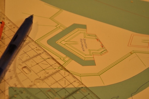 Het te bouwen object wordt eerst ingetekend in de grote plattegrond van 1867.