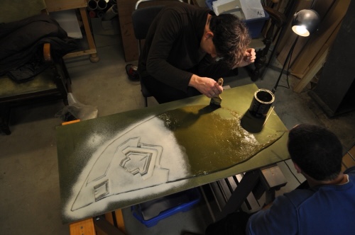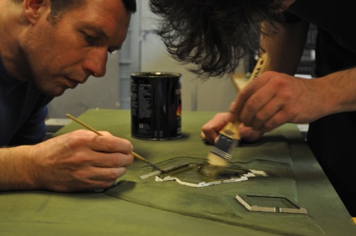 Dan kan het grondwerk beginnen. Niet met kruiwagens, maar met beitels en mesjes.