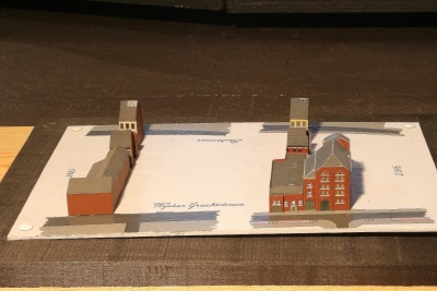 Op de voorgrond het nog steeds bestaande brouwershuis.
