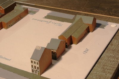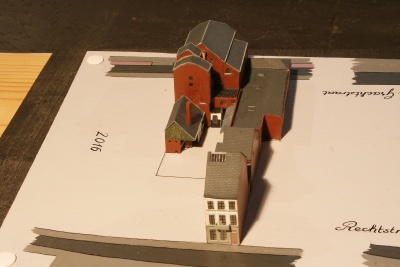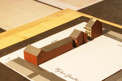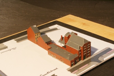 De brouwerij gezien vanuit de Wijcker Grachtstraat met op de voorgrond de mouterij uit 1885 waarin de Maquette Maastricht 1867 staat opgesteld.