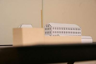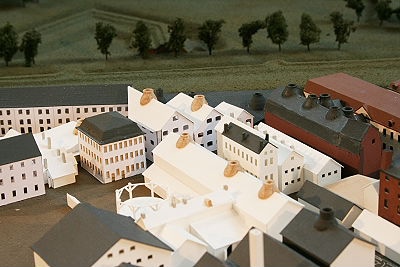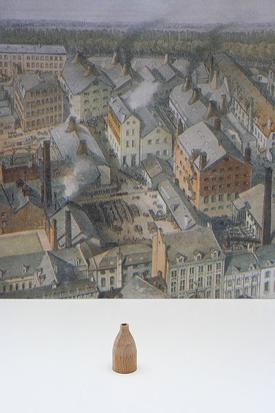 Dan wordt er een foto van de maquette gemaakt zoals de fotograaf in 1869 de poort en fabrieken ook gezien heeft. Die wordt dan weer vergeleken met de originele foto.